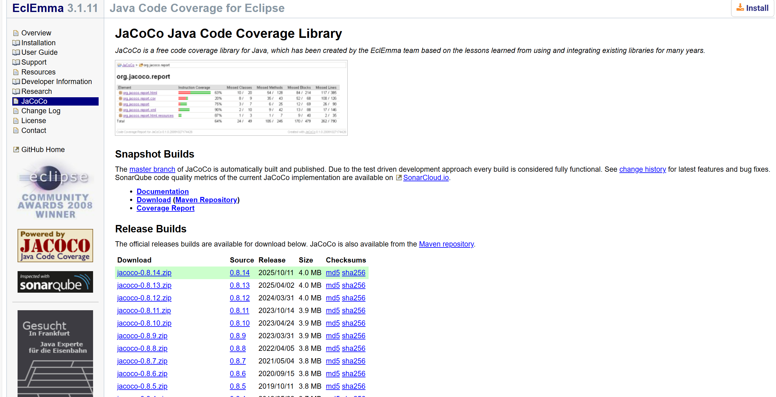 去官网下载,链接这里有:https://www.jacoco.org/jacoco/