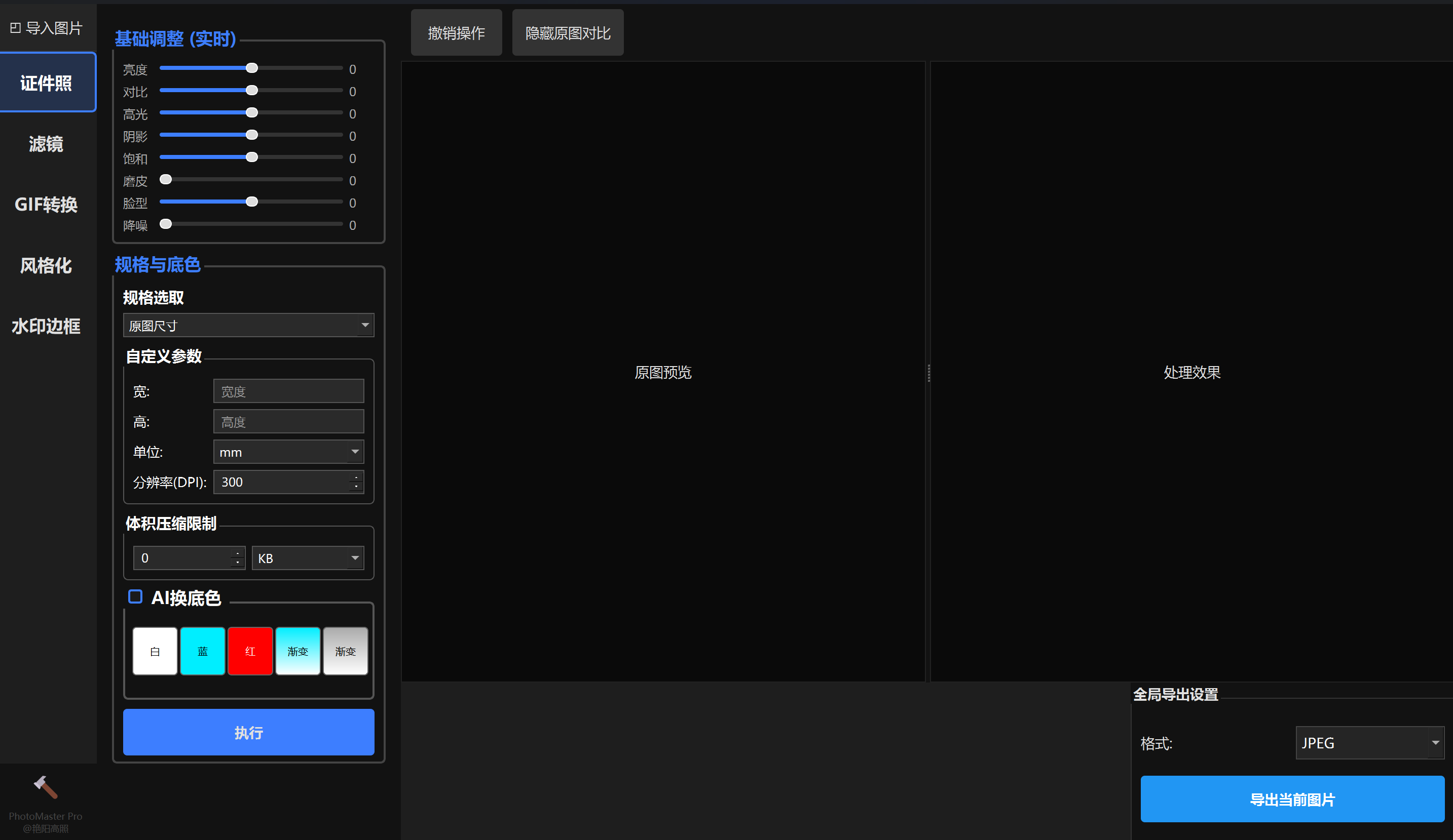 【PhotoMaster Pro】快速影像处理系统,用于证件照/水印/滤镜/GIF生成