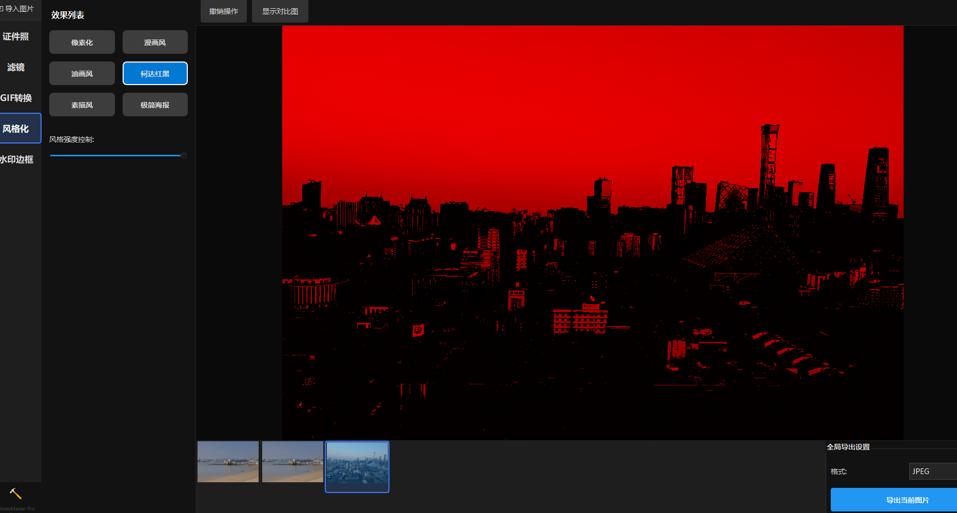 艺术风格滤镜:提供像素化、漫画风、油画、素描等多种一键生成特效,还有柯达黑红滤镜。