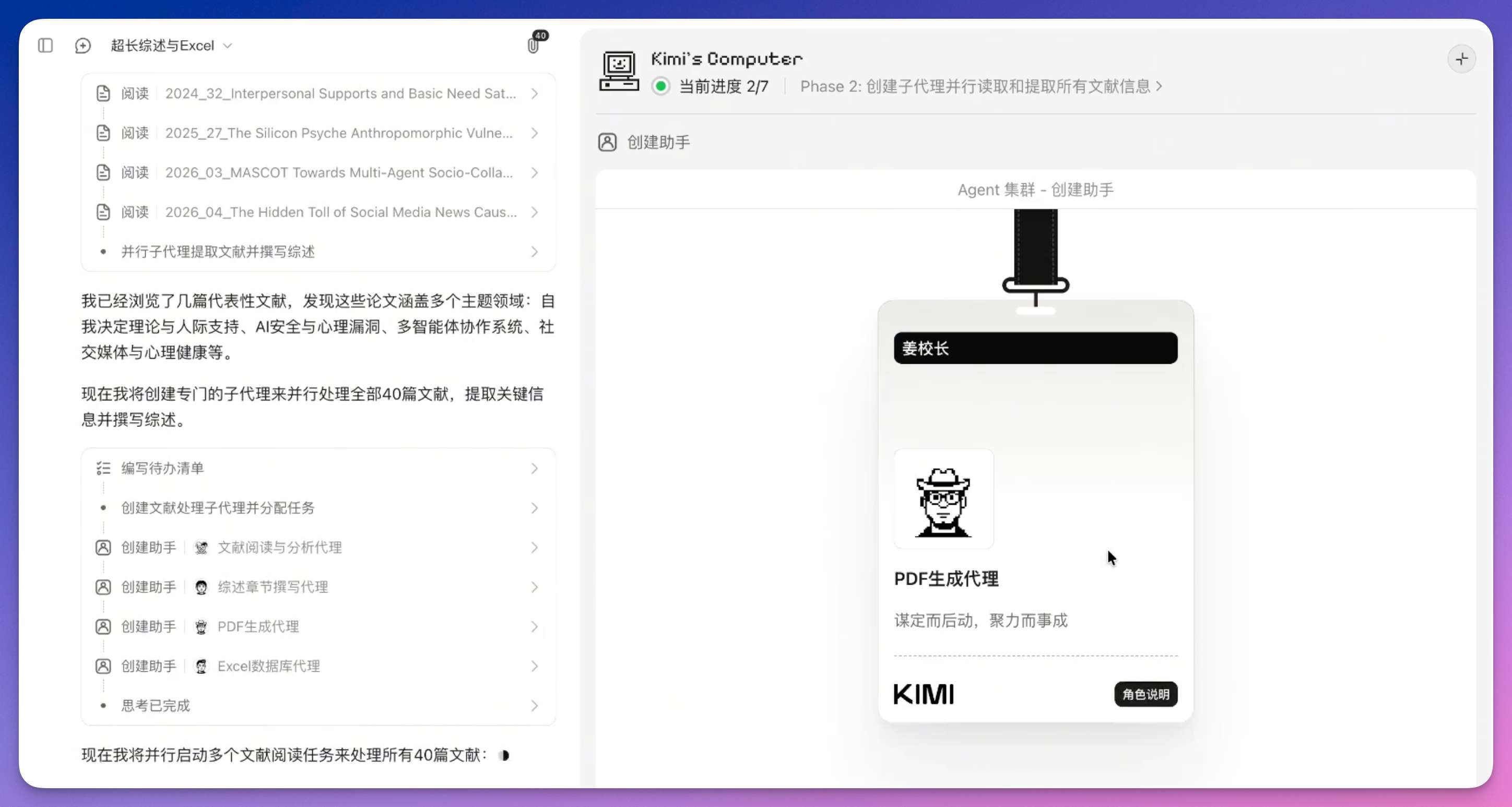 Kimi 更像施工队,100 个分身各干各的,优势在规模。