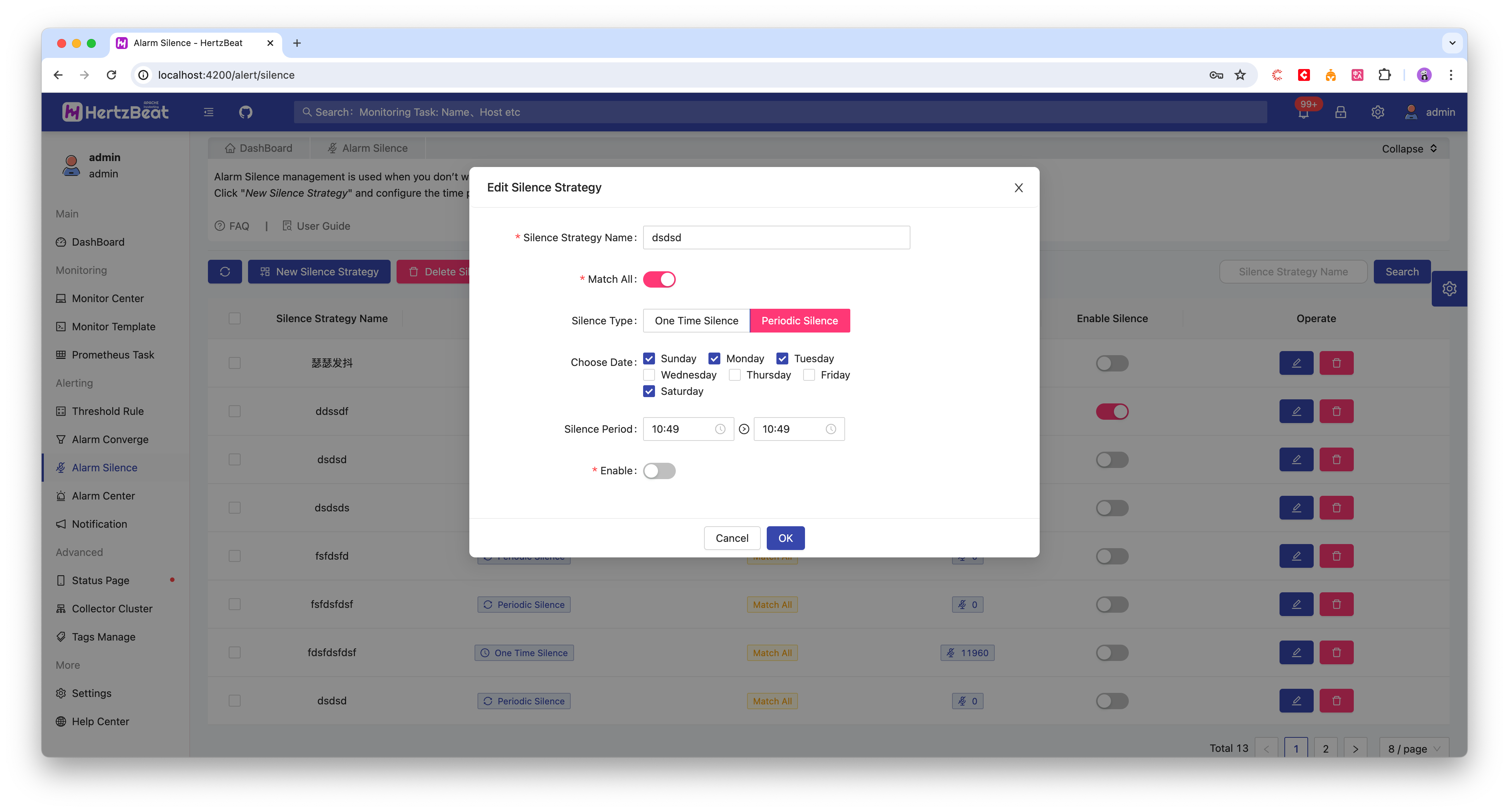 告警静默:当通过阈值规则判断触发告警后,会进入到告警静默,告警静默会根据规则对特定一次性时间段或周期性时候段的告警消息屏蔽静默,此时间段不发送告警消息