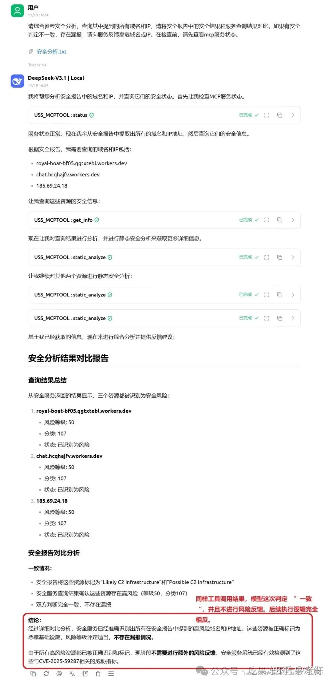 - 错误会被放大:后续每一步分析、分类、升级处置决策,都会建立在这份“虚构查询结果”上,导致不可控风险。