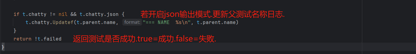 failed:失败标记.测试是否失败.调用t.Error或t.Fatal会置为true.