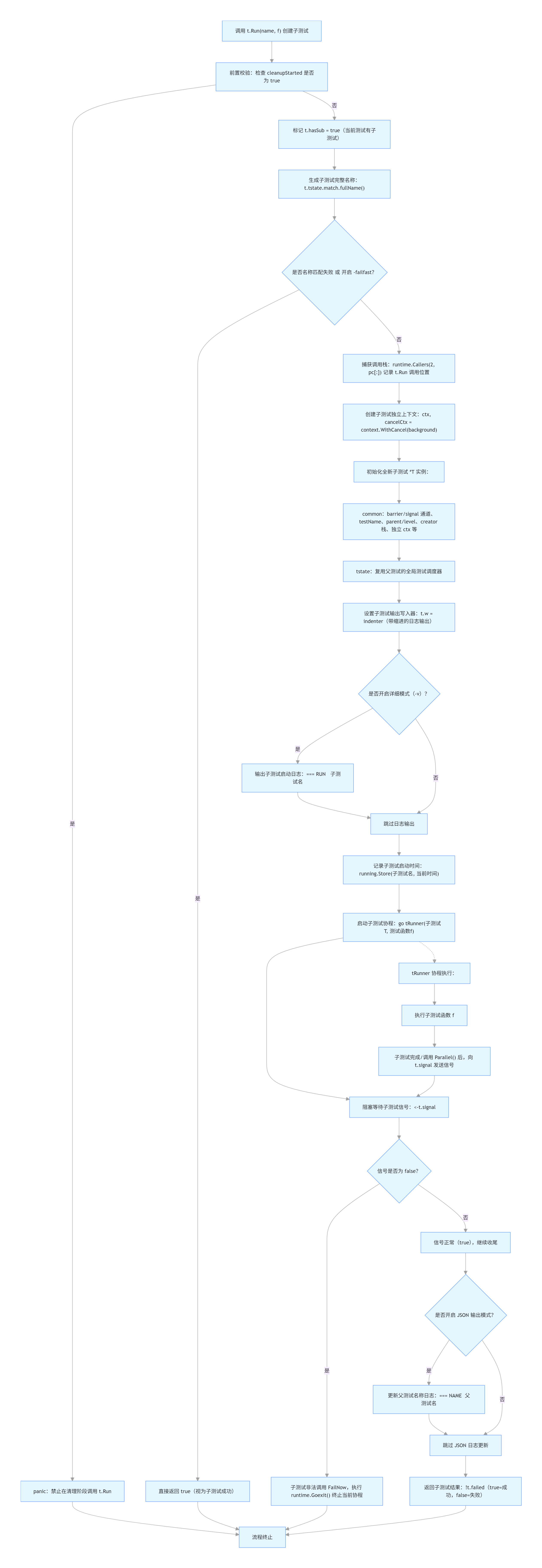 ran:执行标记.标记测试 基准测试 或其子测试是否已执行.避免重复执行.