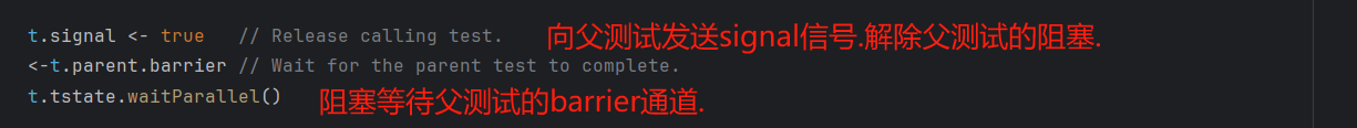 barrier chan bool // To signal parallel subtests they may start. Nil when T.Parallel is not present (B) or not usable (when fuzzing).