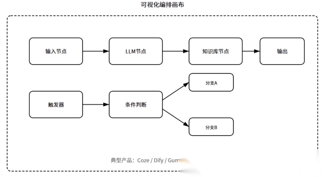 典型产品:Coze(扣子)、Dify、Gumloop、Flowise。