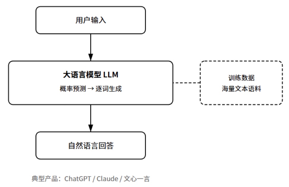 典型产品:ChatGPT、Claude、文心一言、通义千问。