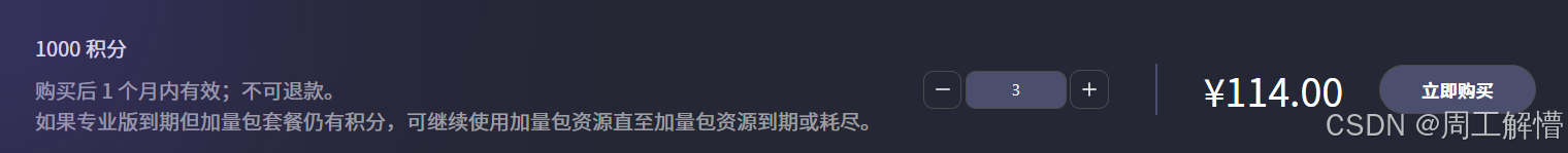 - 1000 积分 = 114 元 → 1 积分 = 0.114 元