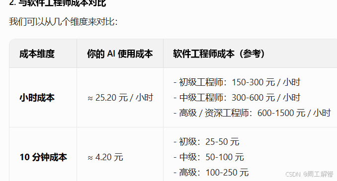 这 10 分钟的直接成本约为 4.20 元,如果换算成小时成本,大约是 25.20 元 / 小时。