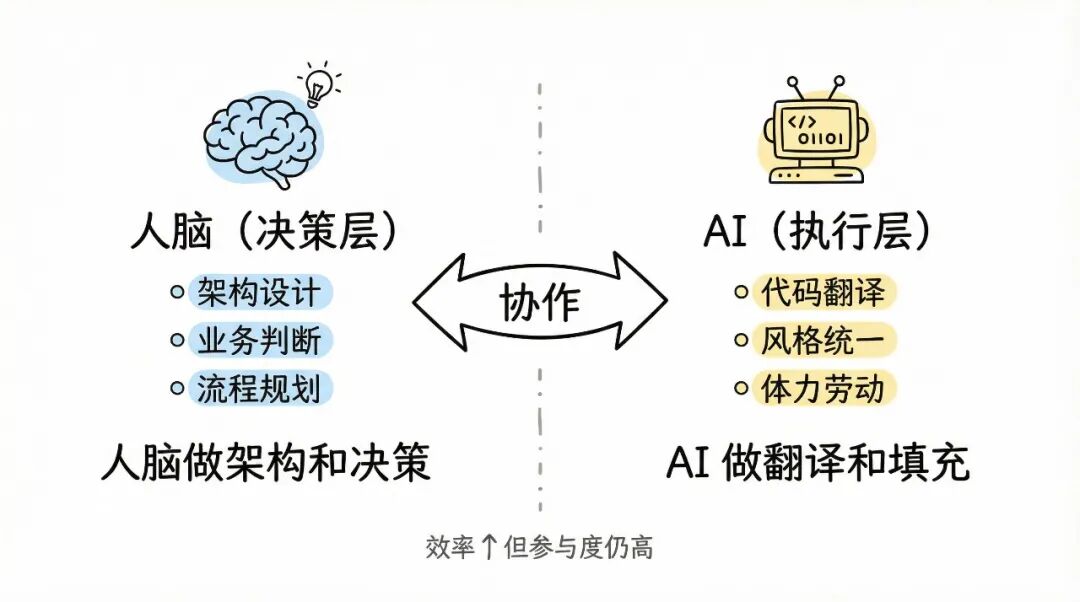 第一阶段工作模式:人脑决策层与 AI 执行层的分工协作
