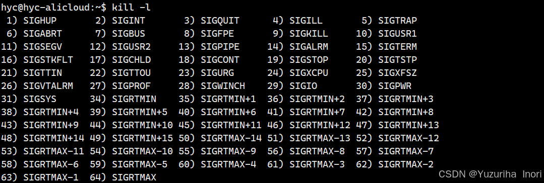 其中,我们只需要关注信号1~31(普通信号),信号的名字本身是宏,其真正的值就是前面的编号。