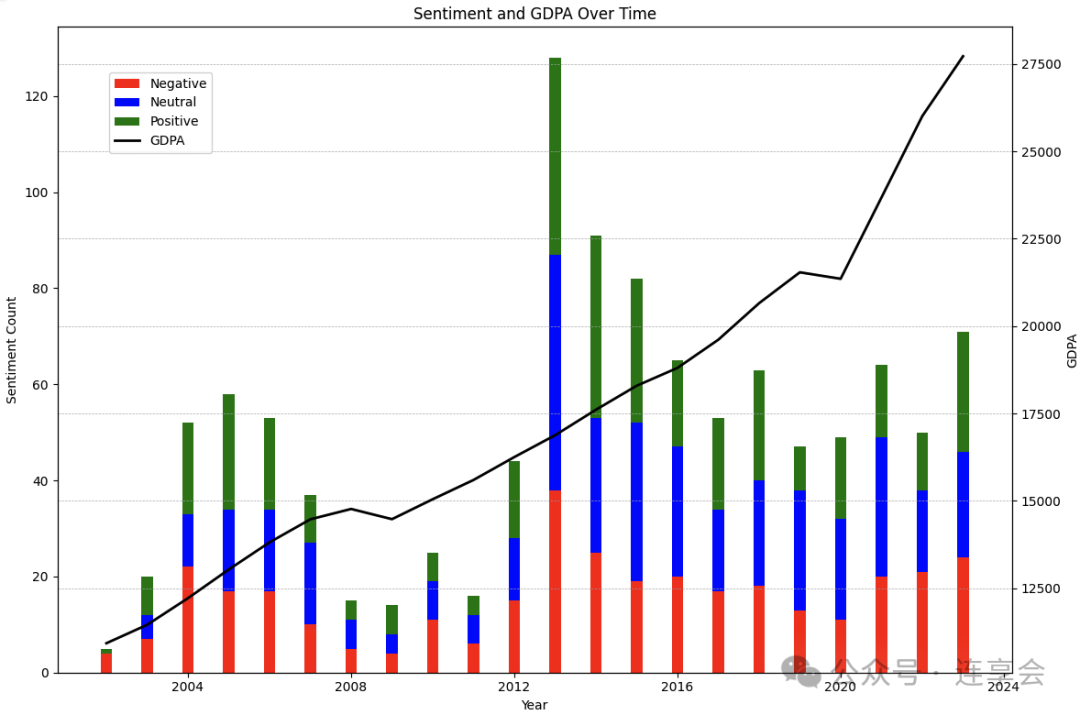 ax1.set_title('Sentiment and GDPA Over Time') # 图表标题