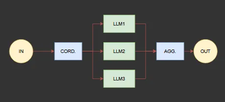 换言之,同时发起多个LLM调用后,通过规则或另一个模型整合输出。这种方式能显著提升速度与鲁棒性:并行执行节省时间(无需等待长链条任务依次完成),而投票机制可增强可靠性(若五个模型中有三个达成共识,答案大概率正确)。