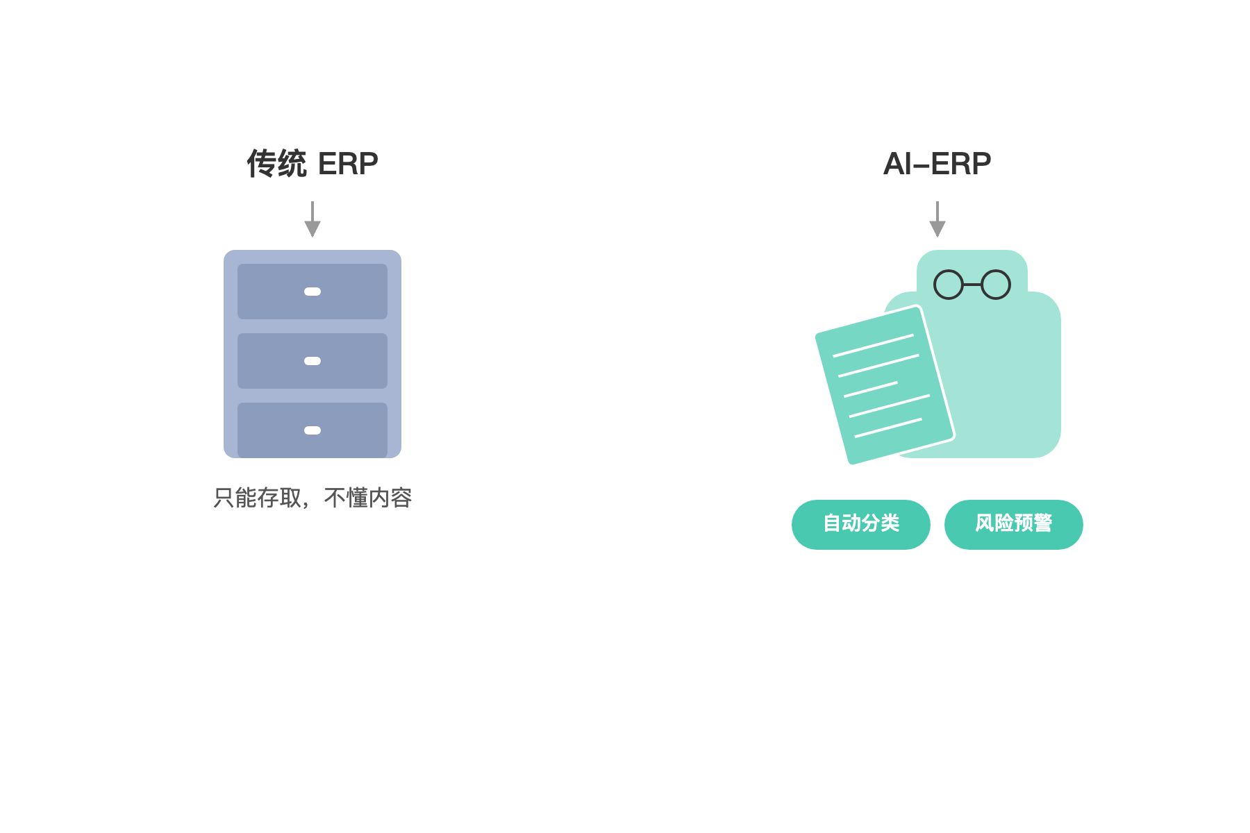 你原来的 ERP 系统是啥?它就是一个巨大、但有点“死脑筋”的档案柜。你让它存个东西,比如一张采购单,你得清清楚楚地告诉它:“喂,把这张单子,放到‘华南区’、‘第三季度’、‘电子元件’这个抽屉里。”它就“啪”一下给你放进去了。你问它:“我上个月买的那批螺丝钉在哪?”它就去翻抽屉,然后告诉你:“在 B-2-5 抽屉。”