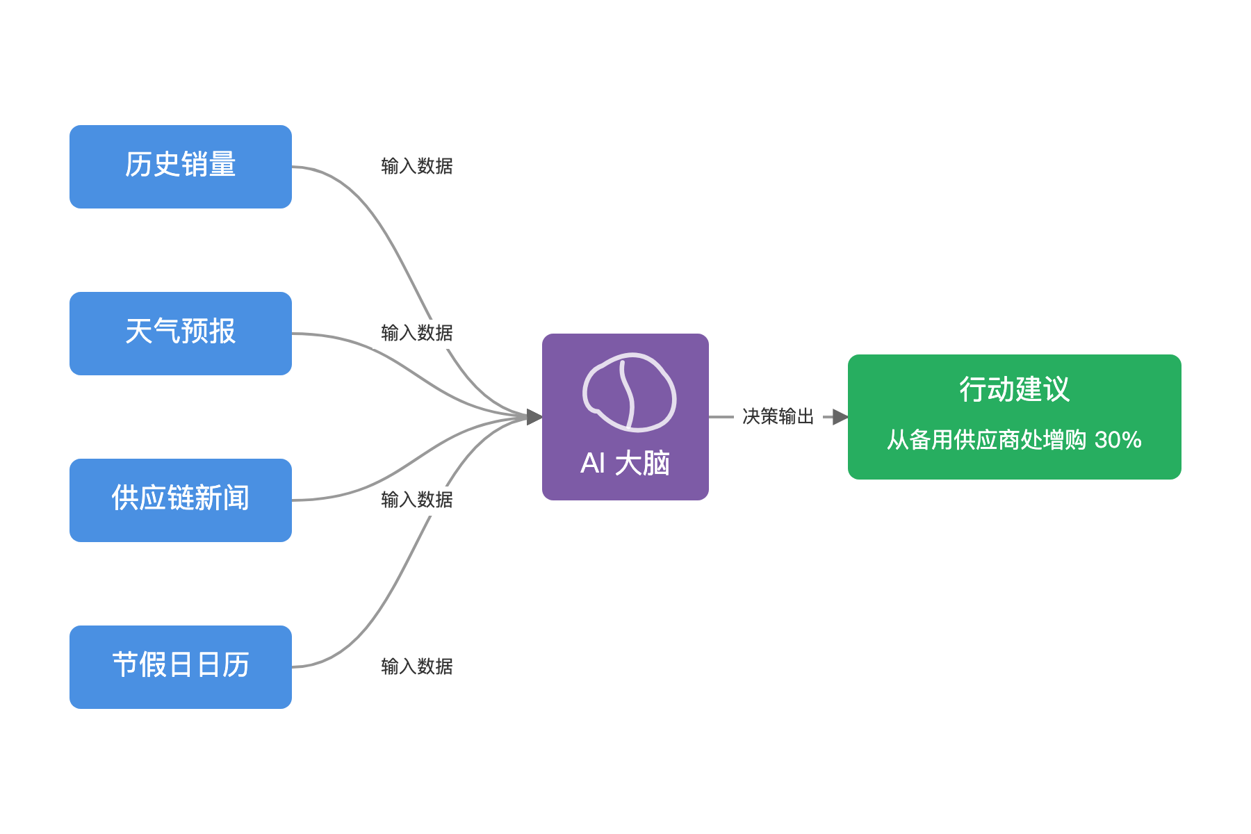 它发现:历史数据显示,每年“双十一”前螺丝销量都会涨 300%;天气预报说,未来一周有强台风登陆主要航运港口;财经新闻提到,钢铁价格在上涨。