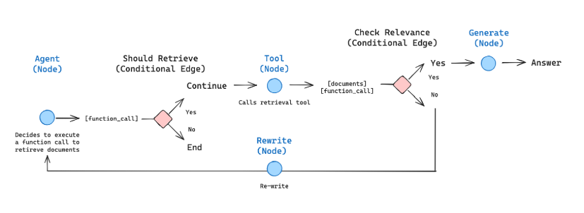 通过自我修正机制提升文档利用率和响应质量。动态评估检索到的文档,优化查询策略,并在上下文不足时执行补救措施(如网络搜索)