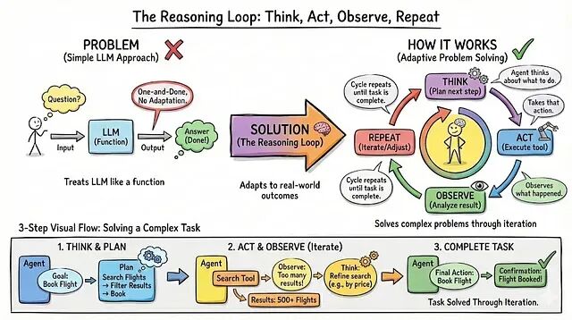 多数开发者把LLM当函数用,输入问题输出答案然后就结束了。但现实中的任务不是一锤子买卖,需要根据中间结果不断调整策略。