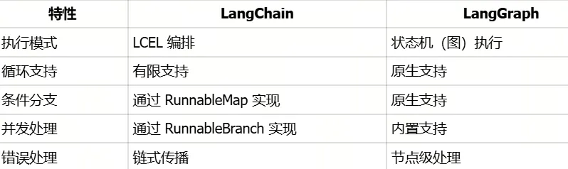 - LangGraph(有向图):动态分支工作流,允许在每一步进行决策并选择分支。
