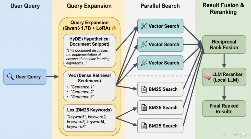 QMD combines BM25 full-text search, vector embeddings, and LLM-based re-ranking — all running locally through GGUF models via node-llama-cpp. Designed specifically for agentic workflows, it provides high-quality retrieval without relying on external APIs.