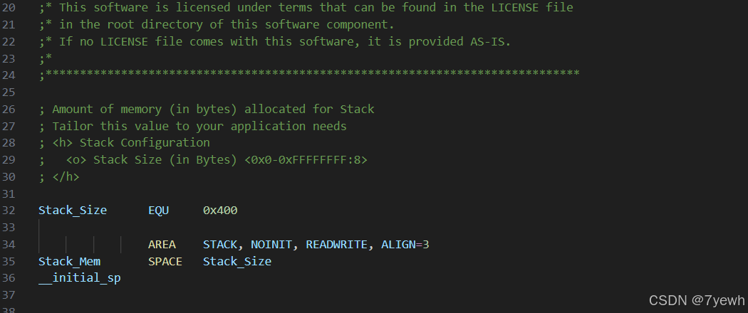 Stack_Size EQU 0x400 uses the EQU pseudo-instruction to define the size of the stack. You can think of EQU as being similar to #define in C. Here, the stack size is set to 0x400, which is 1024 bytes (1 KB).