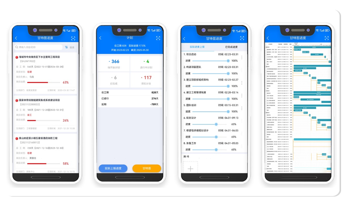 甘特图:支持从单项目到多项目的多层次进度计划编制,涵盖甘特图、关键路径图,实现计划制定的标准化与智能化。