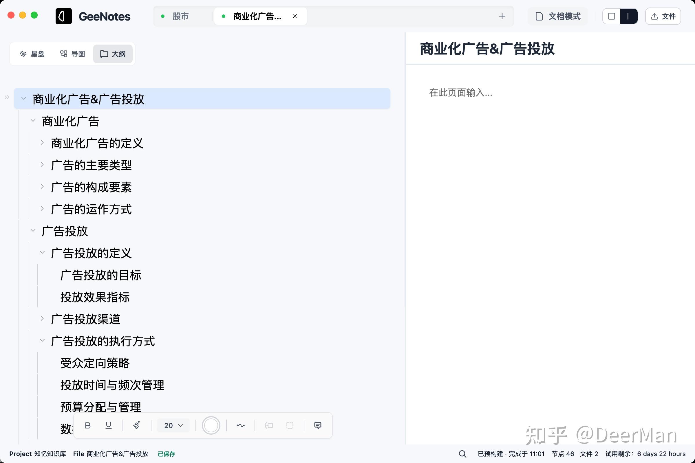左侧是思维导图,一眼看到知识的结构和层级;右侧是富文本编辑器,可以展开写详细内容。点击左侧的节点,右侧自动切换到对应内容。这种「所见即所得」的体验,让知识管理从「切换工具」变成了「自然思考」。