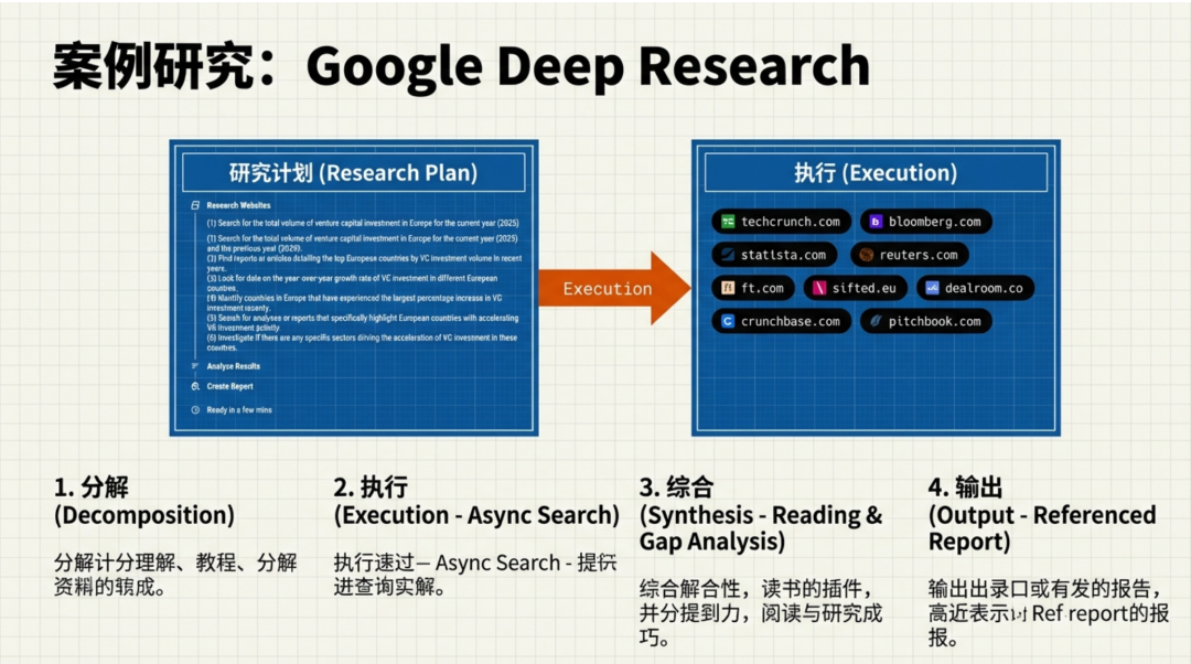 现在,Agent 的算力已经强过人类大脑,外部协调能力(例如通过MCP、A2A 这类方式沟通与协作)也强过很多人类组织,所以在不少场景里,Agent系统确实会比人更强。例如,Deep Research强过大多数研究员。