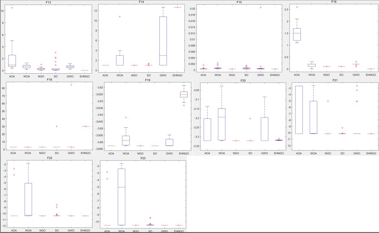 今天咱们来盘一盘这个优化算法圈的新晋狠人——EHNGO。江湖上流传的优化算法千千万,但能把收敛速度和稳定性同时玩出花的真不多见。这货在单峰、多峰、固定多峰三大战场通吃,连箱型图都显示出数据波动小得离谱,看来是练成了什么独门秘籍。