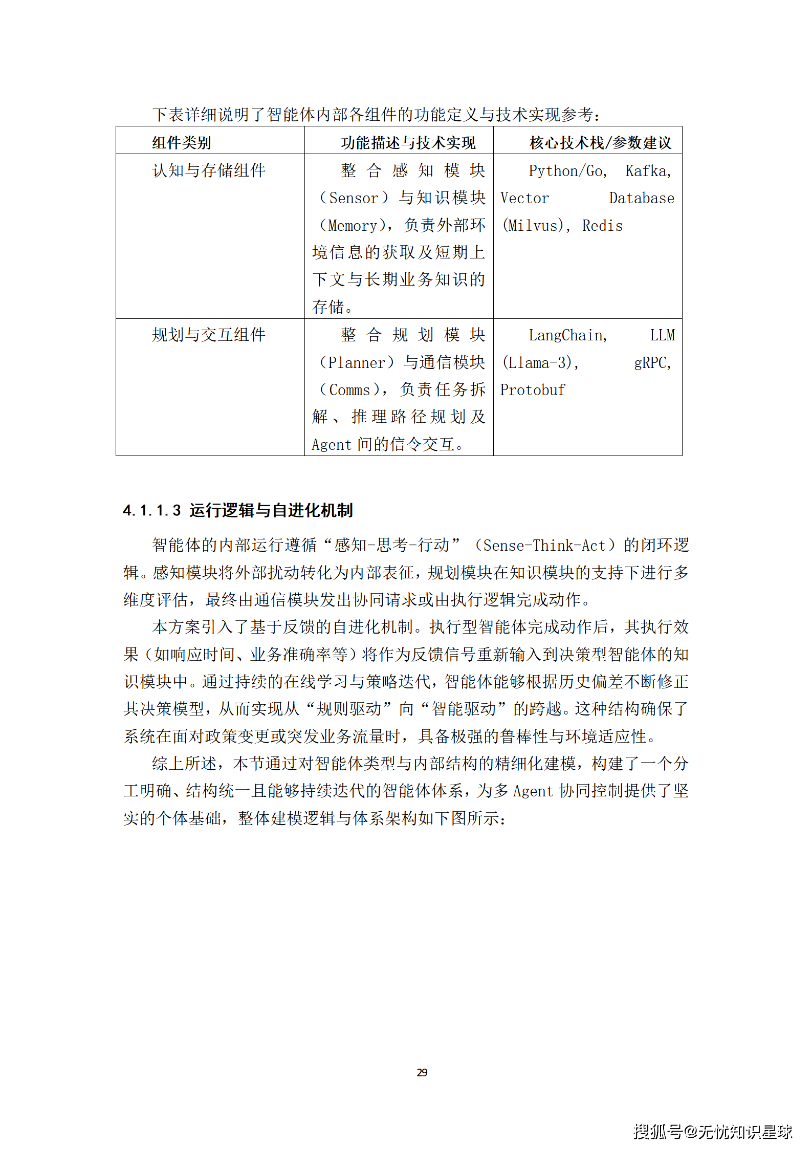 运行逻辑遵循“感知 - 思考 - 行动”(Sense-Think-Act)闭环,并引入基于反馈的自进化机制,通过持续在线学习修正决策模型。