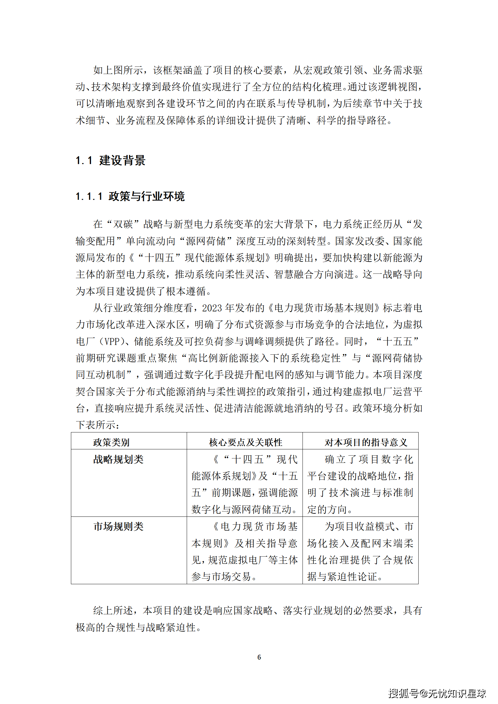 特别是《电力现货市场基本规则》的落地,标志着电力市场化改革进入深水区,明确要求电网具备更强的灵活性调节能力。本项目正是响应国家关于“发展分布式智能电网”与“培育虚拟电厂等新型调节主体”的号召,旨在通过技术创新解决能源转型中的结构性矛盾。