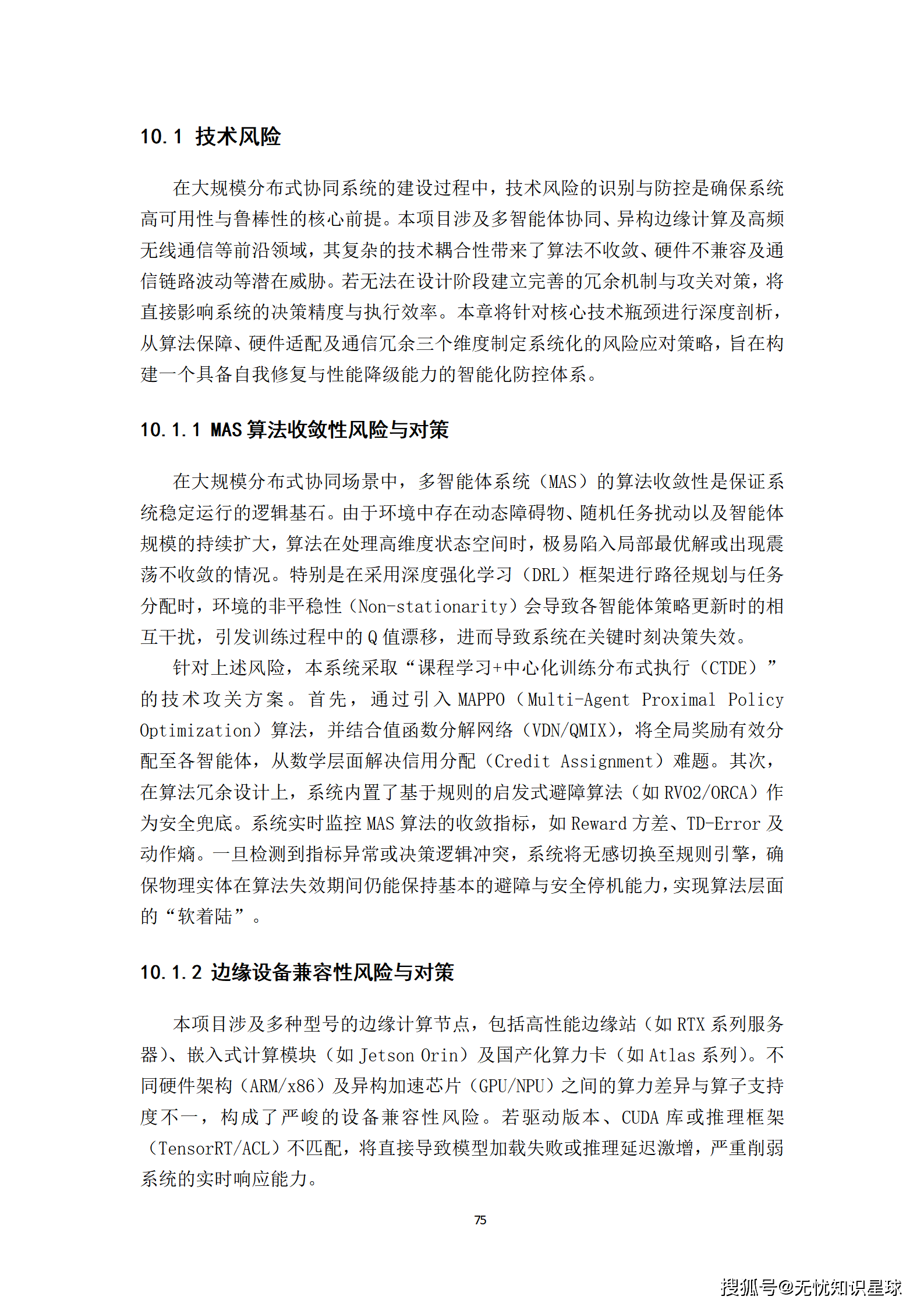 - MAS算法收敛性:采用“课程学习+CTDE”方案,内置规则引擎作为安全兜底,防止算法失效。