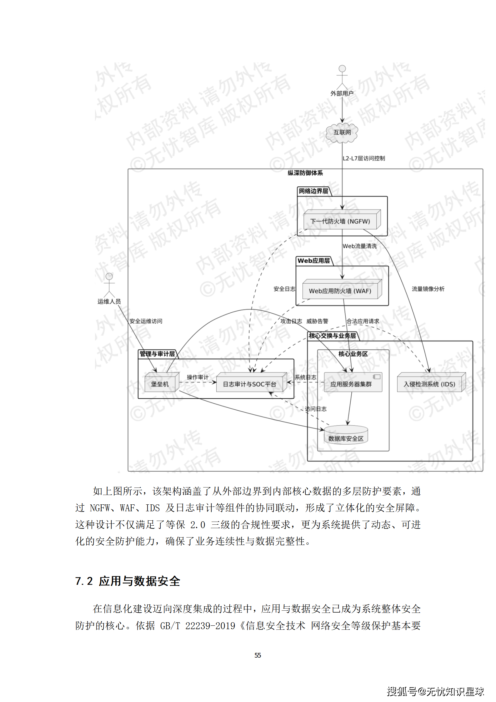- 关键组件:部署下一代防火墙(NGFW)、WAF、IDS及日志审计系统,实现L2-L7层深度过滤。