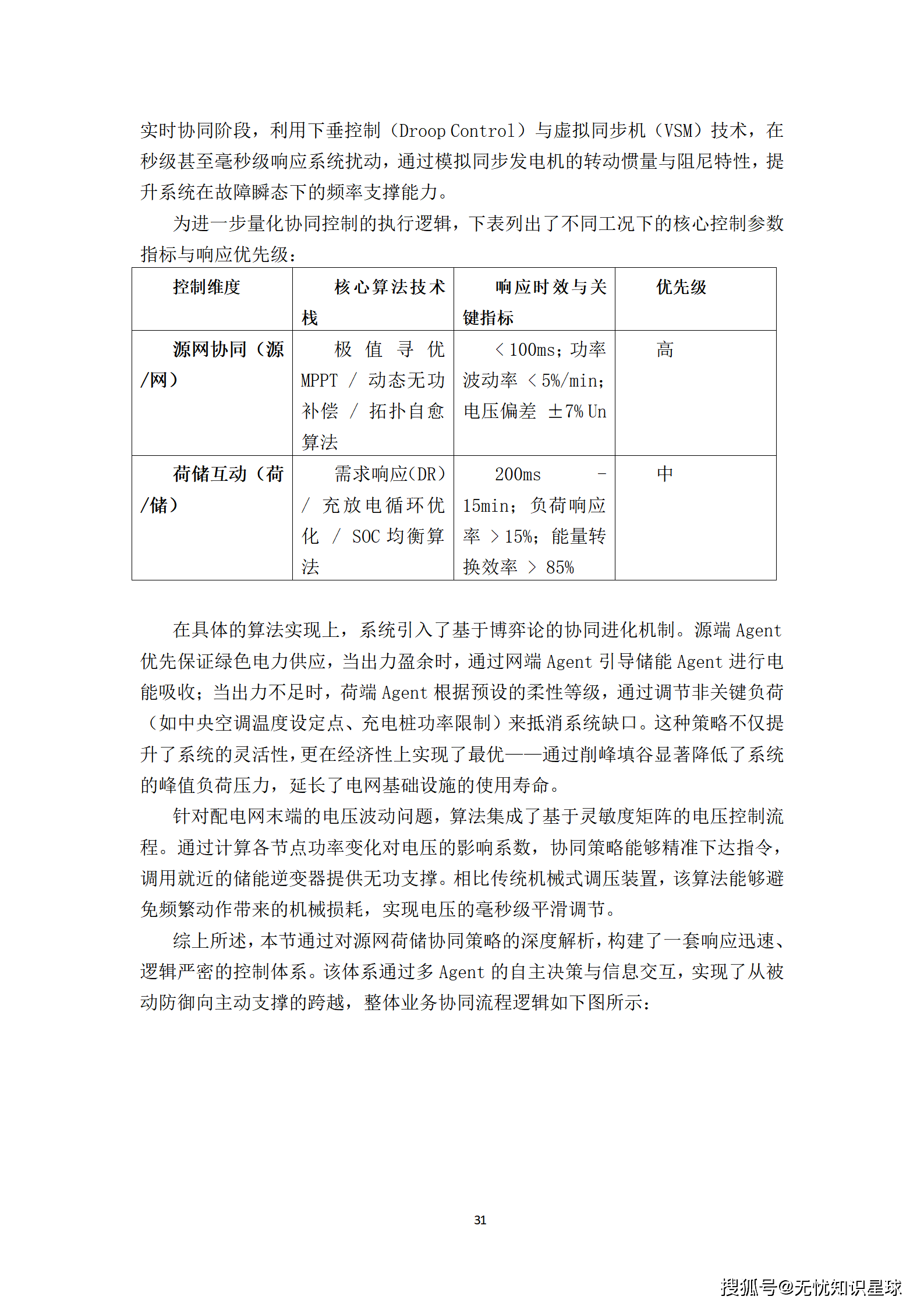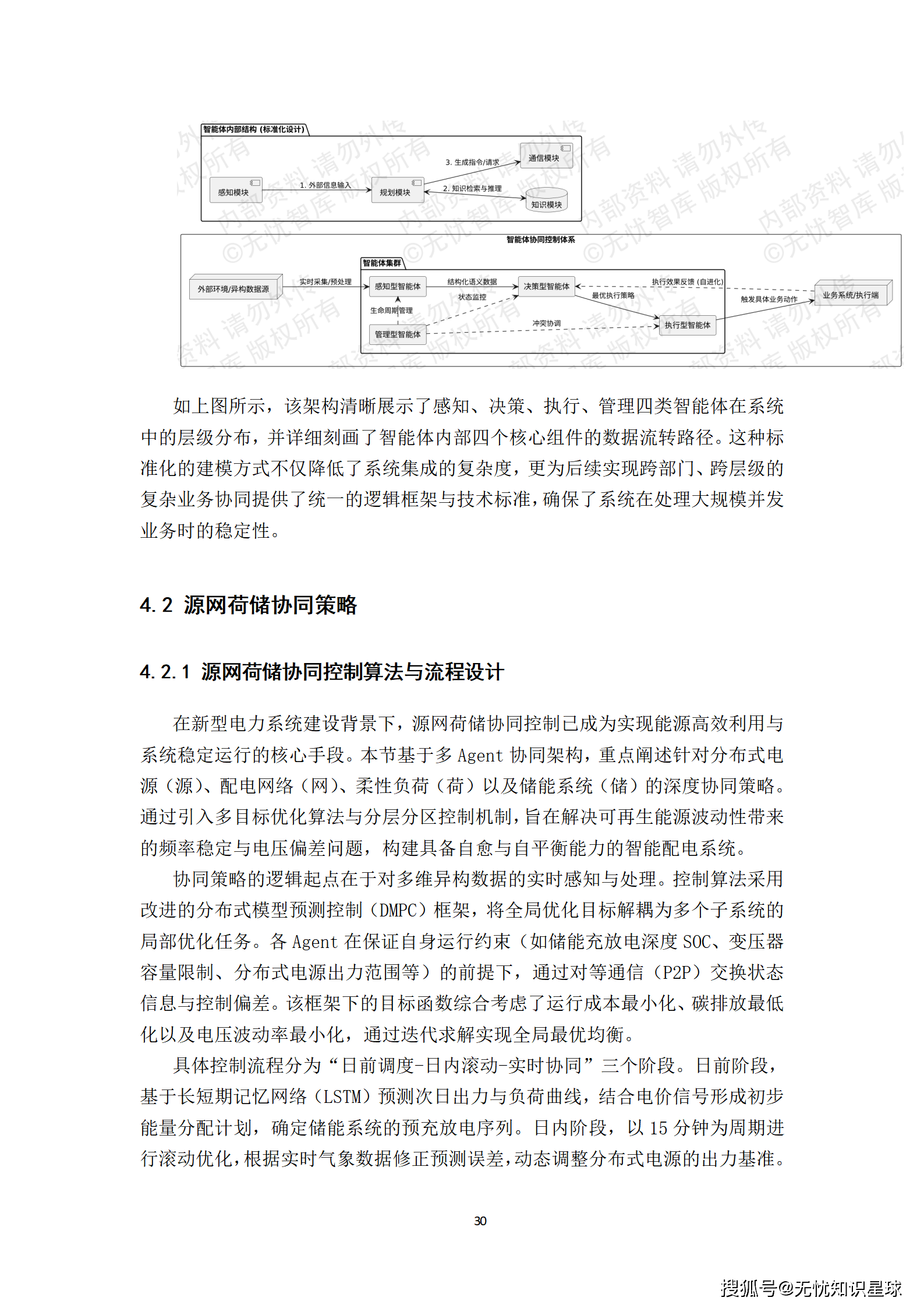 基于多Agent协同架构,重点阐述针对分布式电源(源)、配电网络(网)、柔性负荷(荷)以及储能系统(储)的深度协同策略。