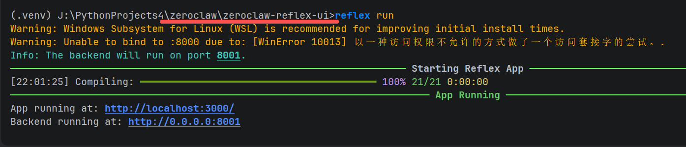 cd zeroclaw-reflex-ui .venv\Scripts\Activate.ps1 reflex run |