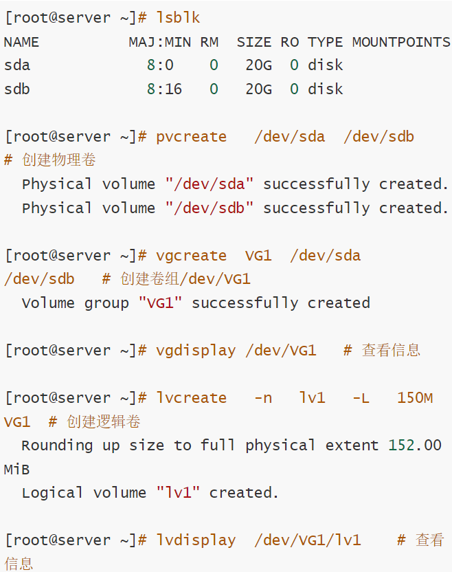 | 显示 | pvdisplay | vgdisplay | lvdisplay |