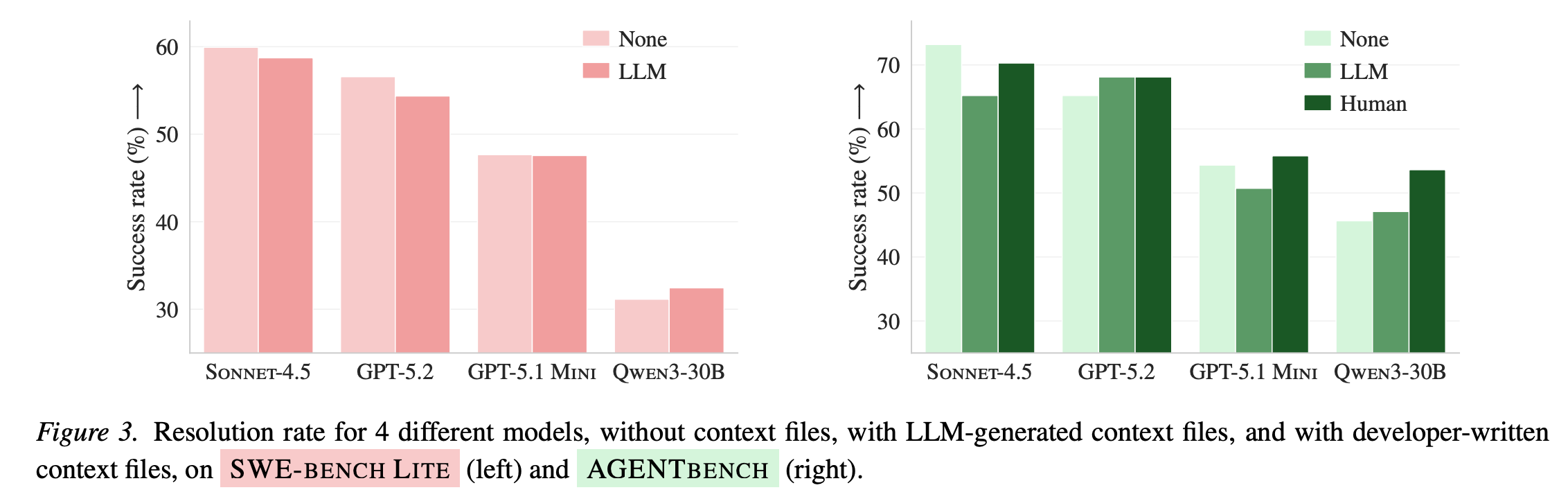 HUMAN:使用仓库里开发者自己提交的 context file(仅 AGENTBENCH 有)