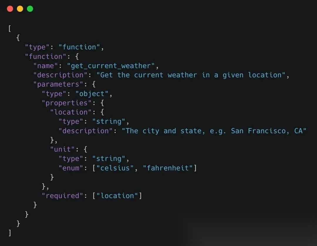 Tools参数的本质:一个“工具清单”数组,里面会详细定义每个工具的作用、所需参数(比如天气查询工具,会定义“工具名称:天气查询”“参数:城市名称、日期”“返回结果:温度、天气状况”),相当于告诉大模型“你可以用这些工具,但怎么用、用什么参数,需要你自己判断”。