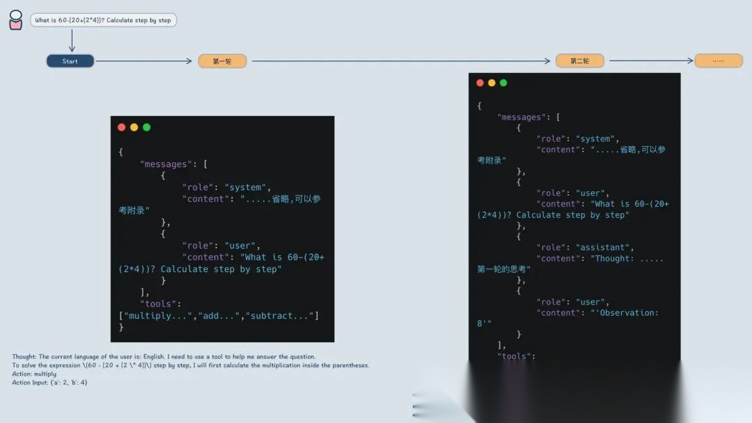 💡 小白拓展:ReAct是很多复杂大模型应用(比如智能助手、自动化办公工具)的核心逻辑,学会这个范式,就能理解大部分大模型“自主完成任务”的底层原理。