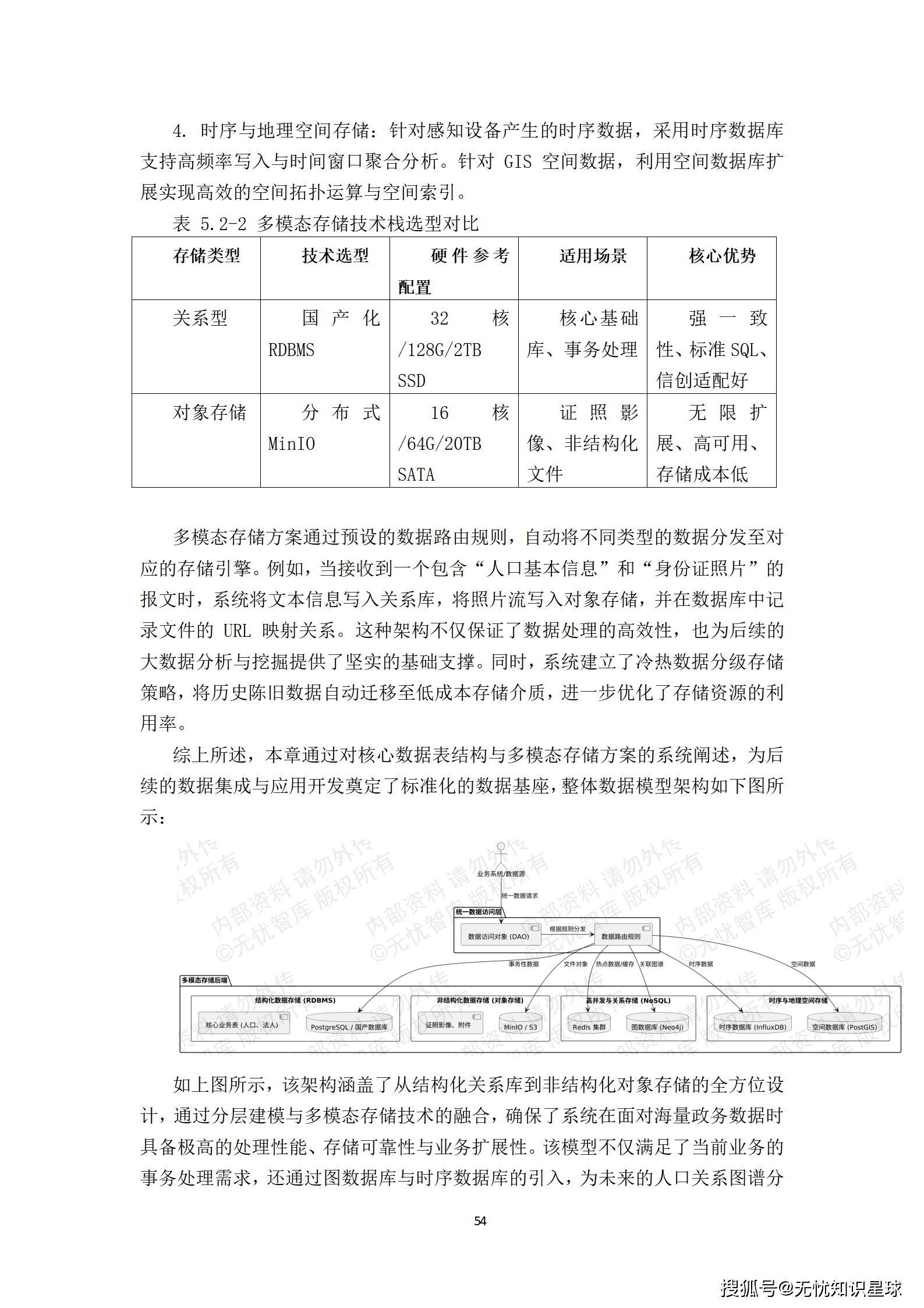 - 关系型存储:国产数据库(达梦/人大金仓),存储核心事务数据,支持MGR集群。