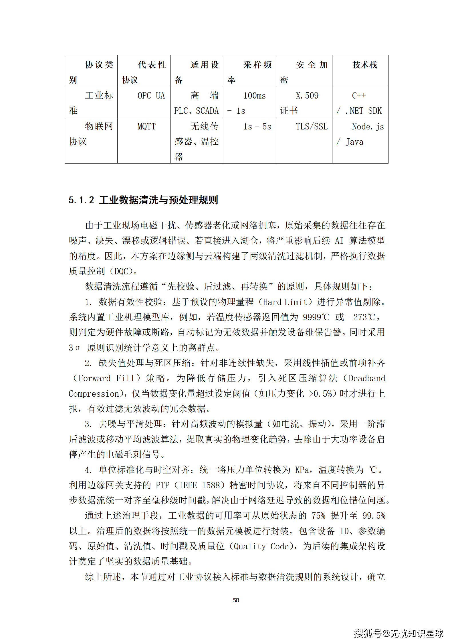 - 数据清洗:执行有效性校验(3σ原则)、缺失值插补、死区压缩及去噪平滑,数据可用率从75%提升至99.5%。