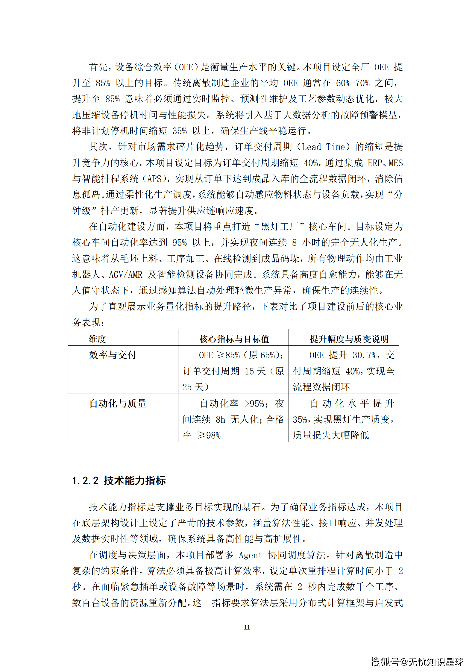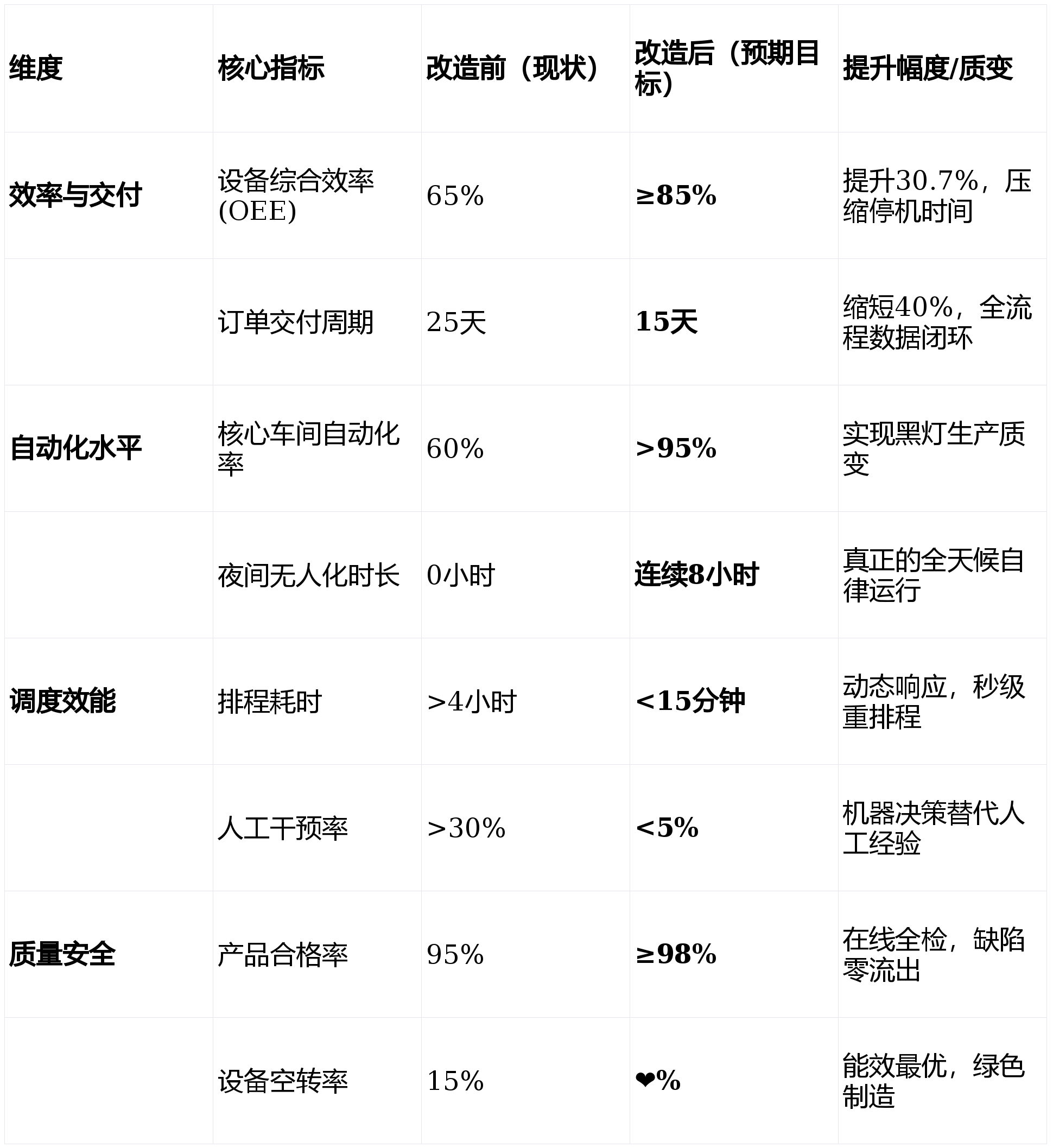 本项目设定了极具挑战性的量化目标,旨在通过数字化与智能化手段重塑传统生产模式。