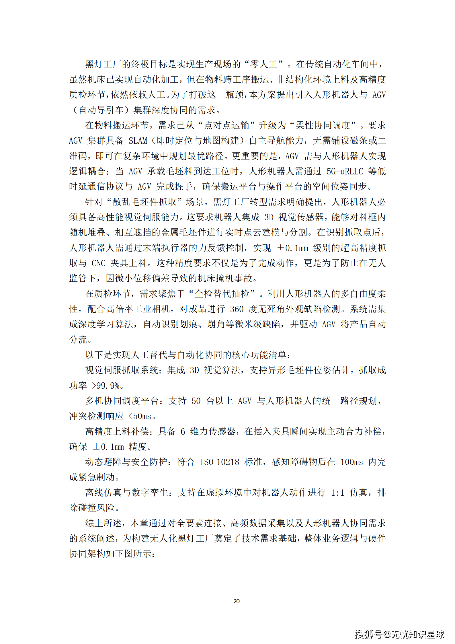 - 黑灯工厂关键技术:100Hz高频采集、人形机器人视觉伺服、5G-uRLLC低时延协同。