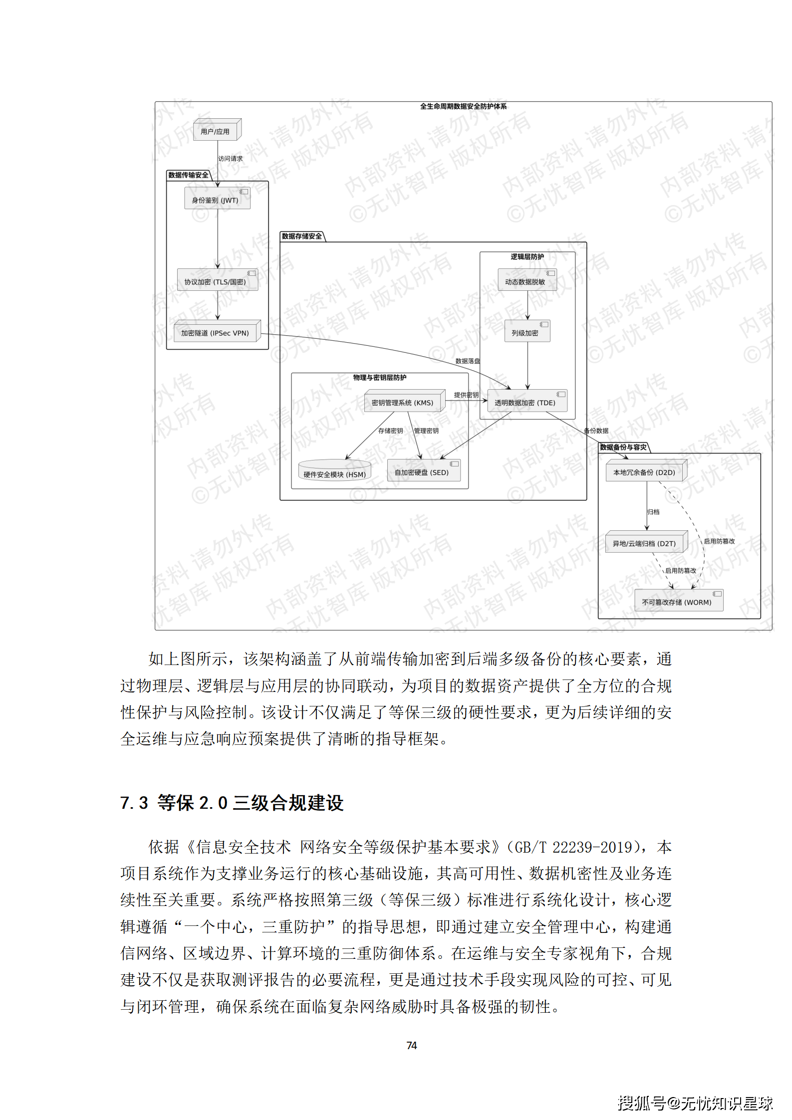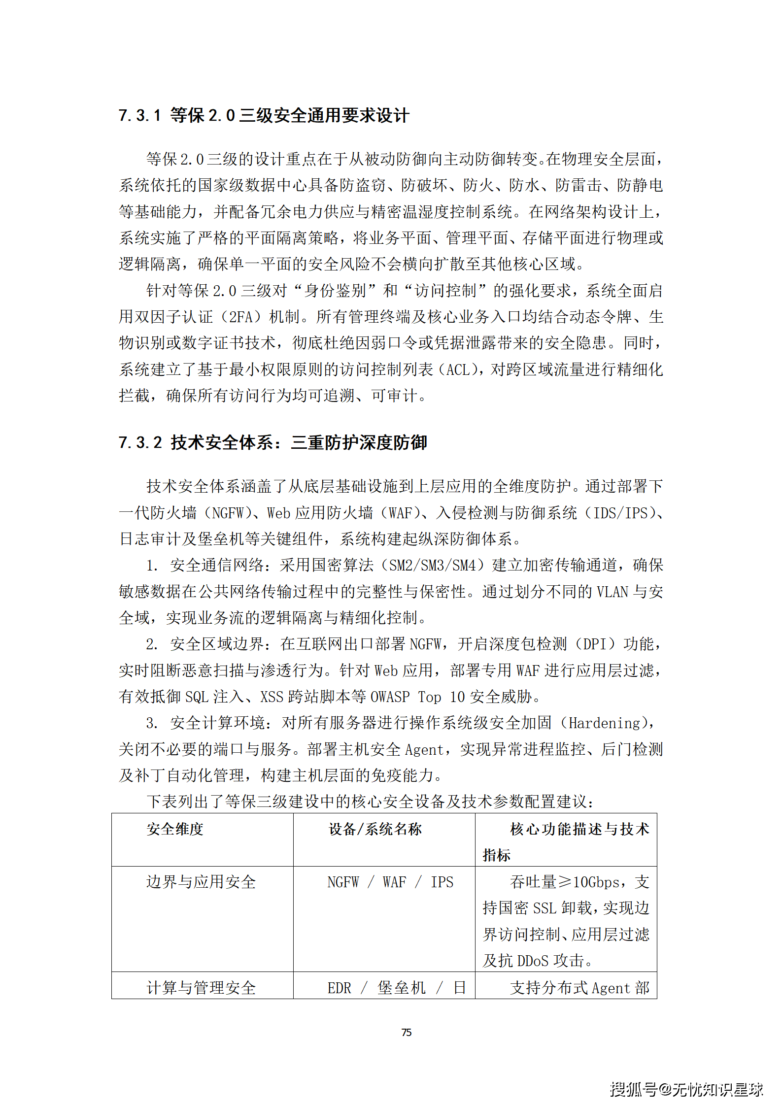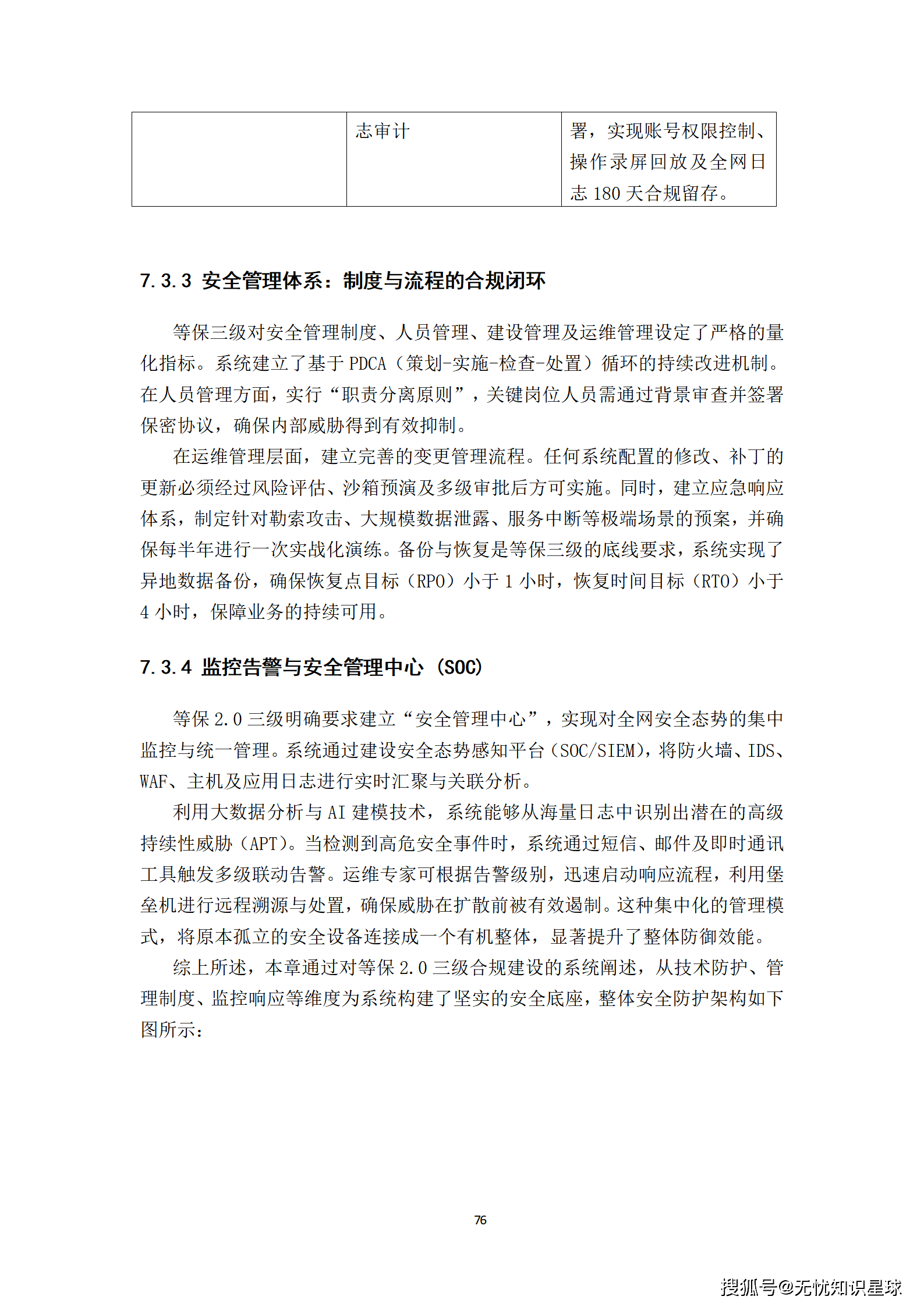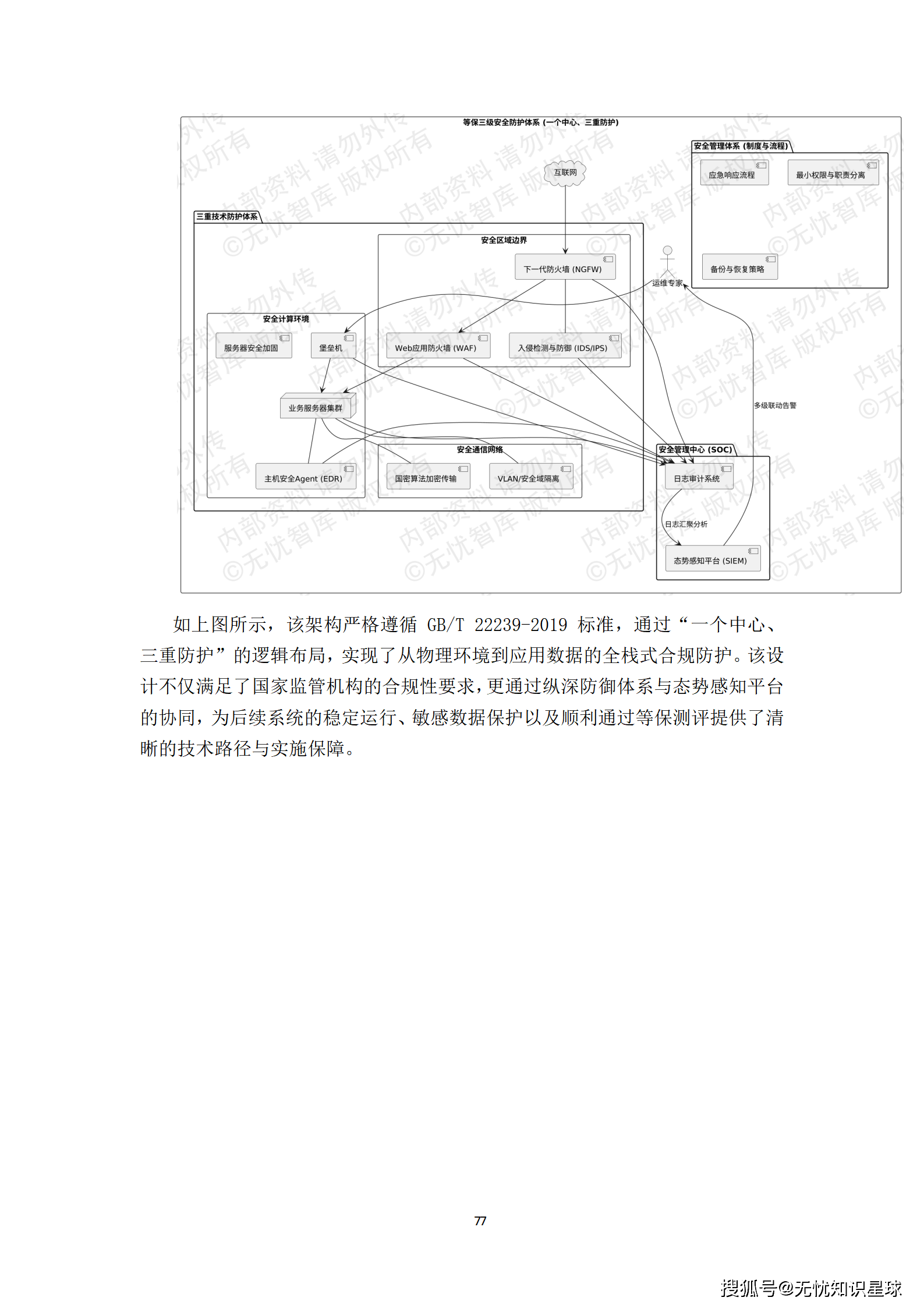 严格遵循等保2.0三级标准,构建“一个中心,三重防护”体系。