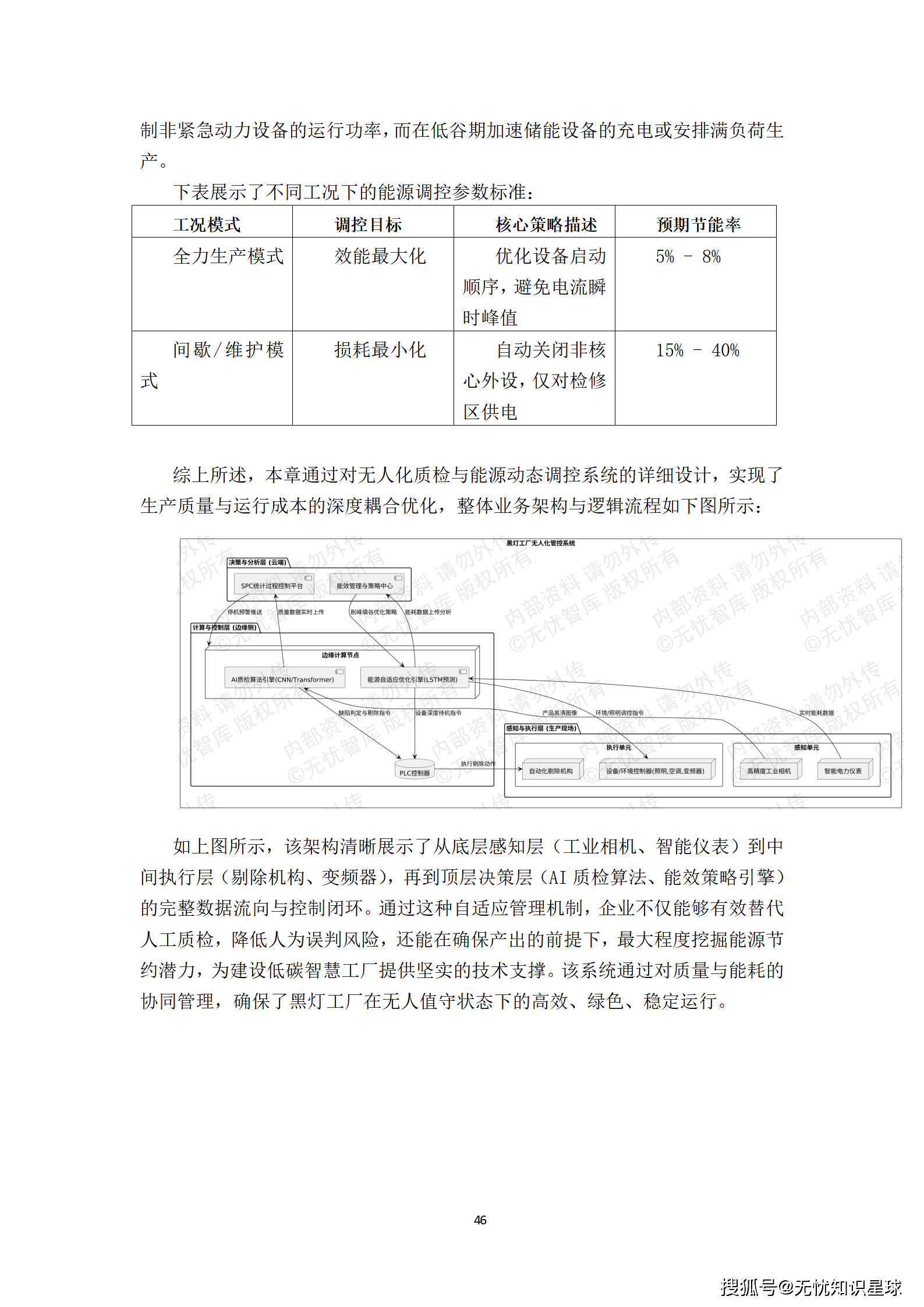 - 多级调控策略:照明自适应:无任务时自动切断非必要照明。设备待机:工序间隙超阈值,自动下发“深度待机”指令。环境温控:根据无人员散热特点,动态调节空调风机,预计降低暖通能耗15%。