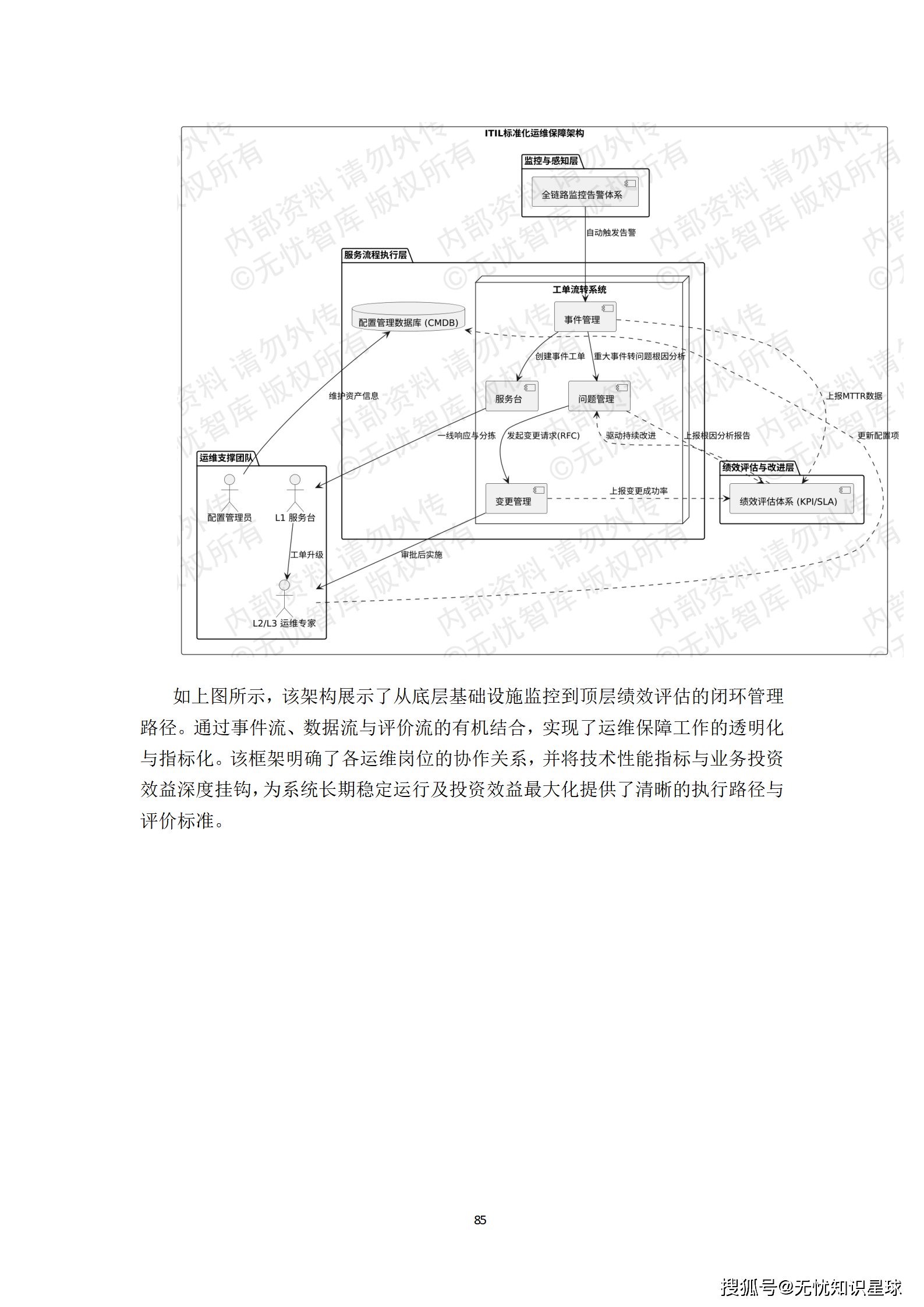 - ITIL标准化流程:建立事件、问题、变更、配置管理五大核心模块。