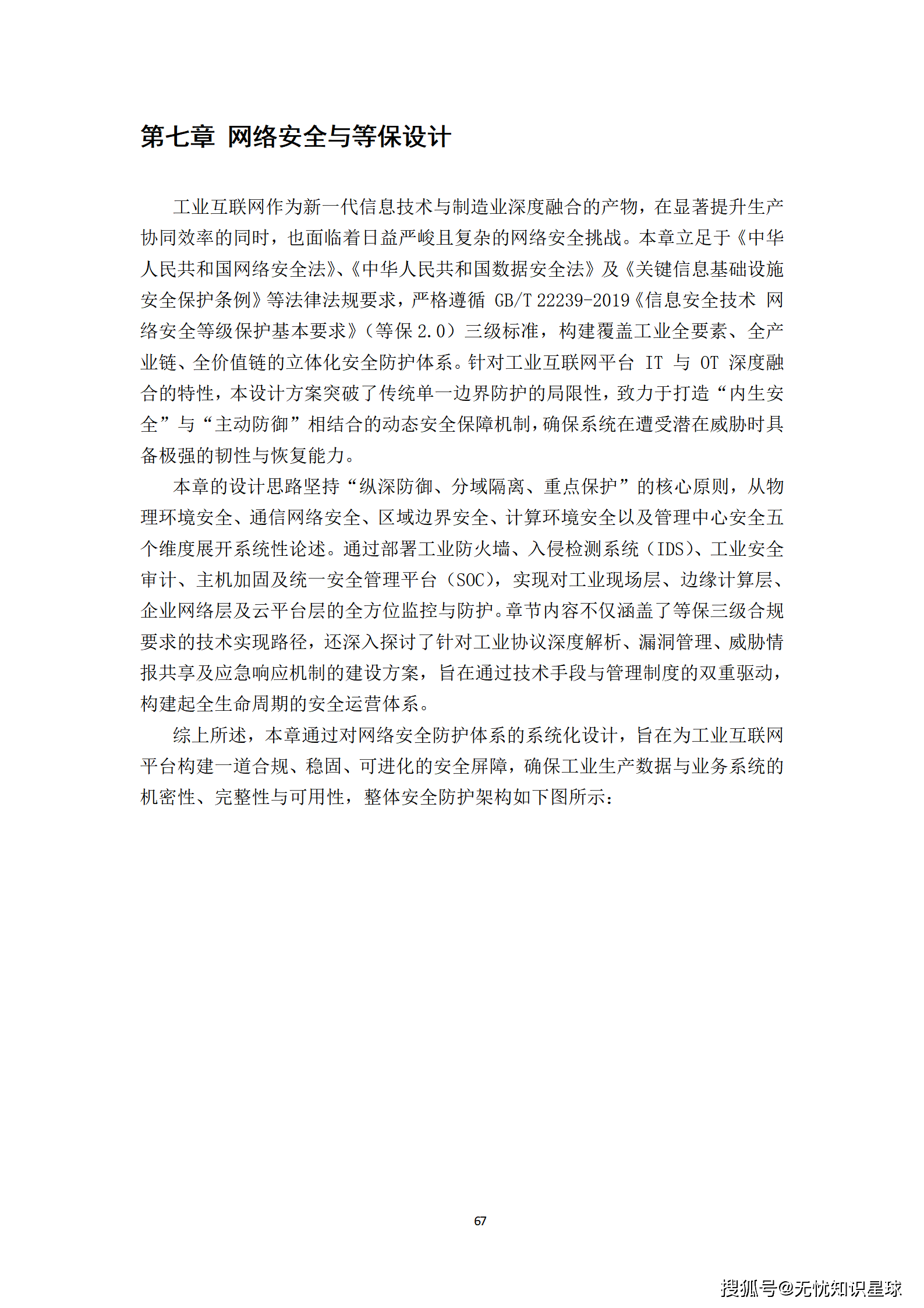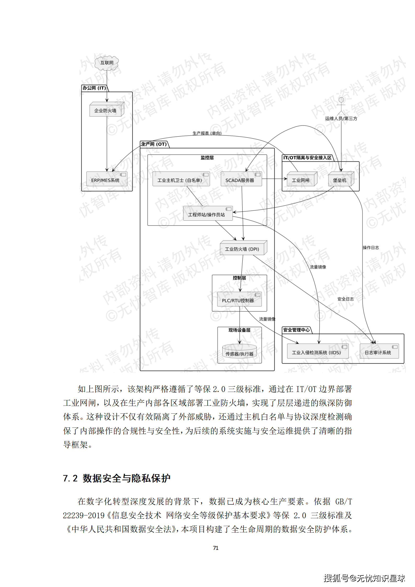 - 等保2.0三级:工业安全的核心是IT/OT隔离、协议深度检测和白名单机制。