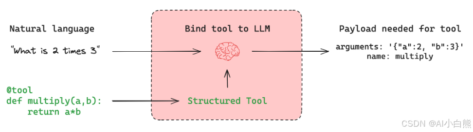 # -> AIMessage(tool_calls=[{'name': 'multiply', 'args': {'a': 2, 'b': 3}, ...}])