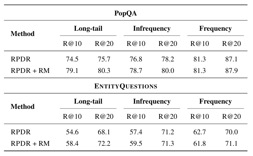 在POPQA和ENTITYQUESTIONS两个基准上,RPDR的表现堪称惊艳: