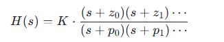 - 实际物理系统中,极点和零点通常为负实数或左半平面(LHP, Left Half Plane)的复数。