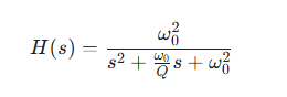 二阶低通滤波器(如 LC 滤波器),其标准传递函数为: